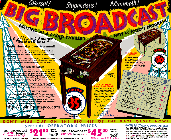 Gottlieb's 1933 Big Broadcast. Incredible middle 2 pages from a 4 page brochure.