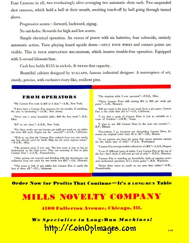 Mills 1934 Cannon Fire page 4 of a 4 page brochure. A complete 4 page reproduction is available.