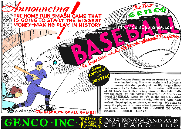 Genco's Baseball from April 1934. The was actually released as Official Baseball and ran into patent problems with Rock-Ola.