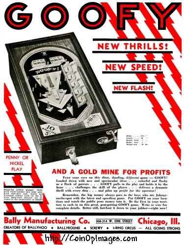 Bally Goofy from September of 1932. A very colorful and popular game.