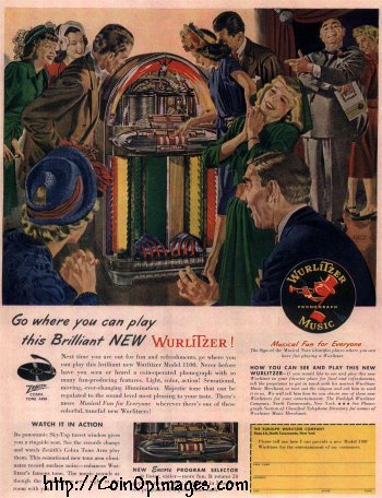 Wurlitzer 1100 ad "Go Where You Can Play this Brilliant New Wurlitzer".