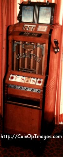 Jennings Cigarolla. 3 reel machine that vends cigarettes. What a beauty. Makes one want to take up smoking ... almost.