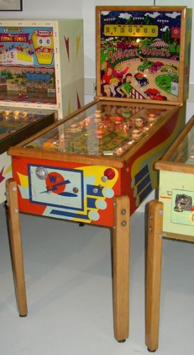 1953 Williams Struggle Buggies. A game I used to own. One of the first games with score reels. Four dummy zero digits at the end! From the Peter Hoebert Collection/Holland.