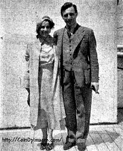 Bill Rabkin of International Mutoscope gets ready to sail to Paris withy his wife (Grace Baron) in 1935. A French coin machine show awaited them.